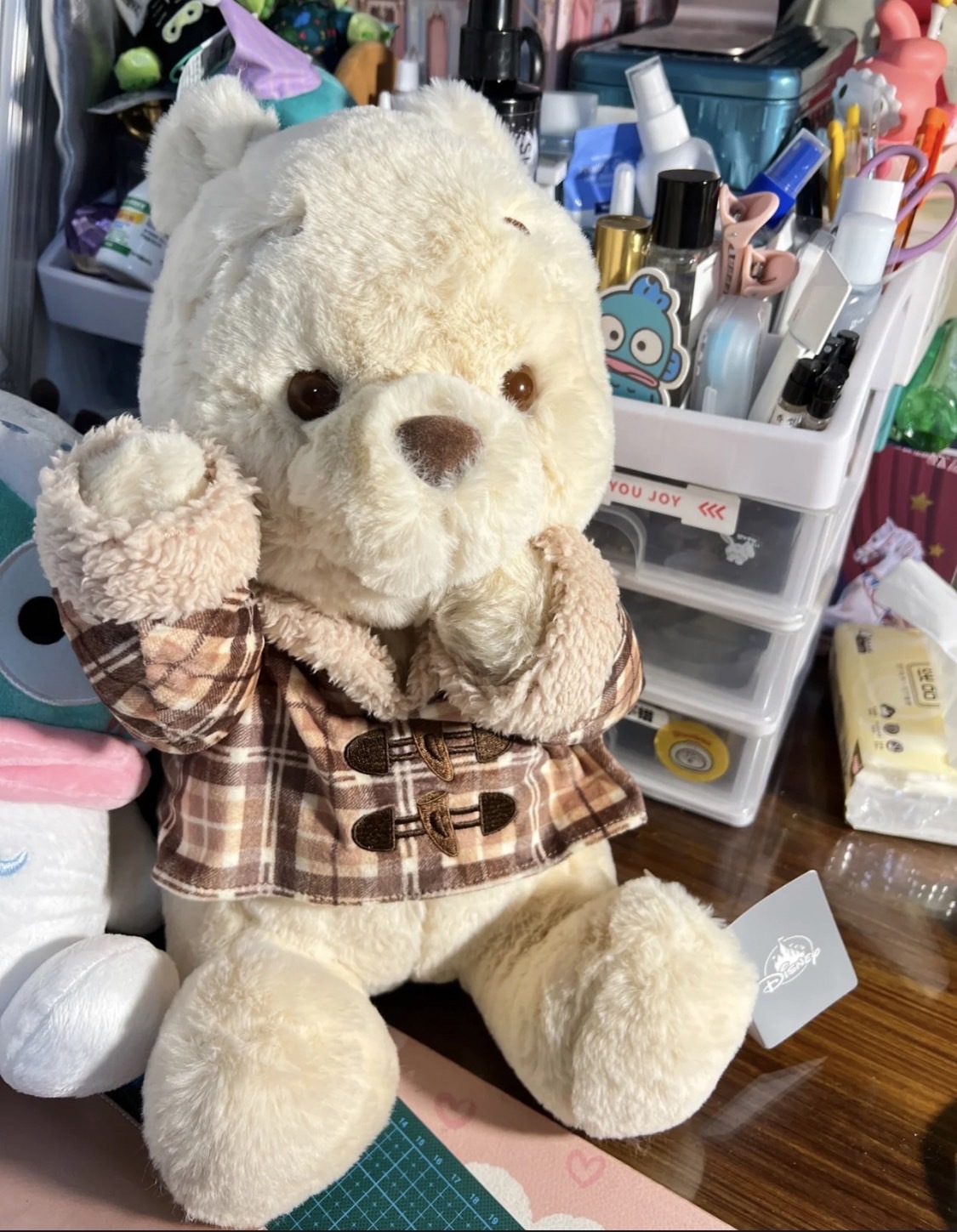格子衣維尼吃手手玩偶 S : 29×19×19(cm)