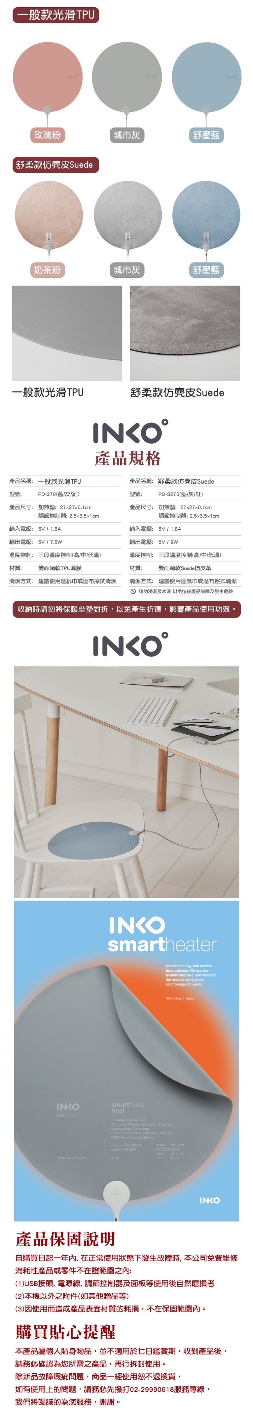 產品名稱:INKO Heating Mat Heal舒柔款仿麂皮Suede