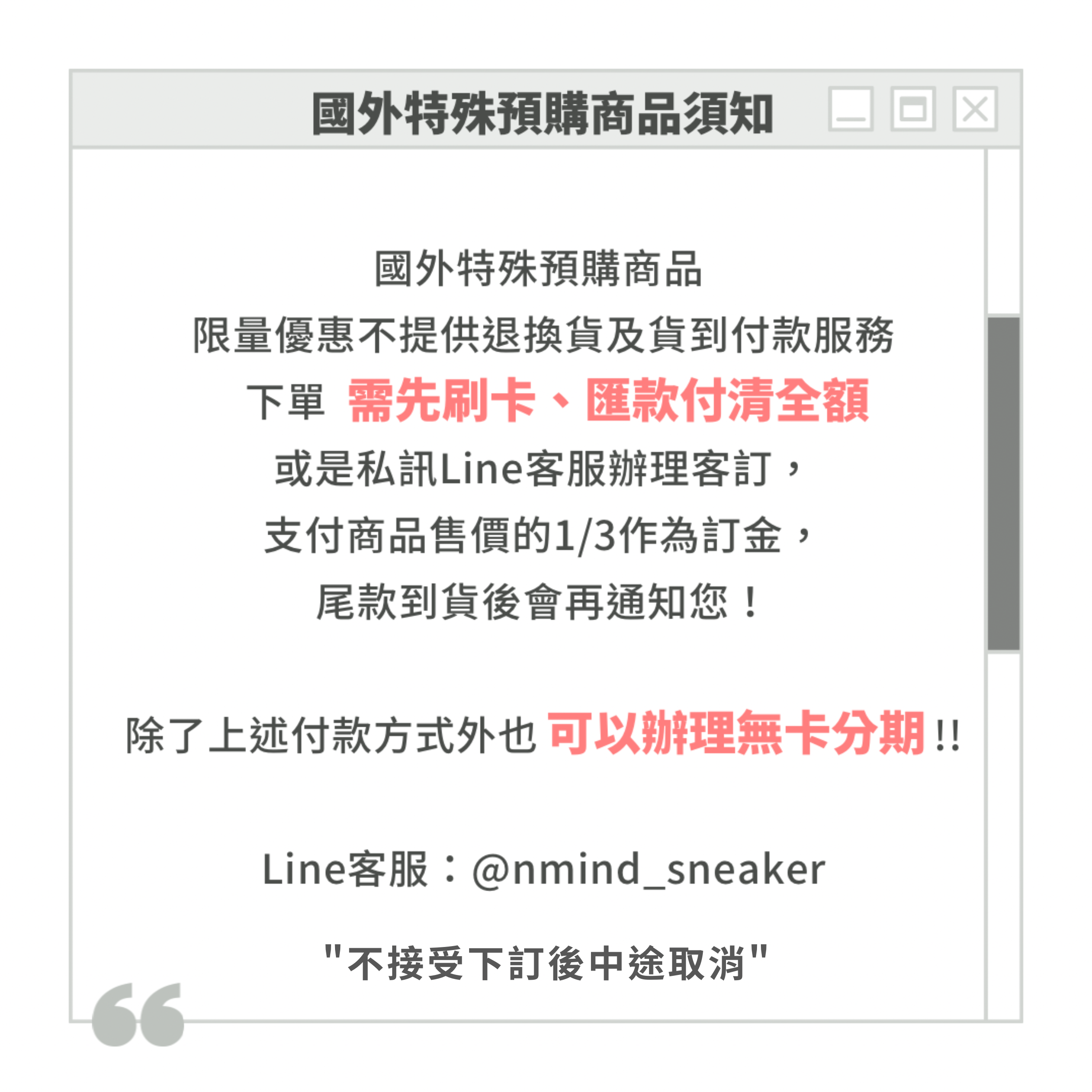 官方Line ID:@nmind_sneaker (要記得加小老鼠唷)