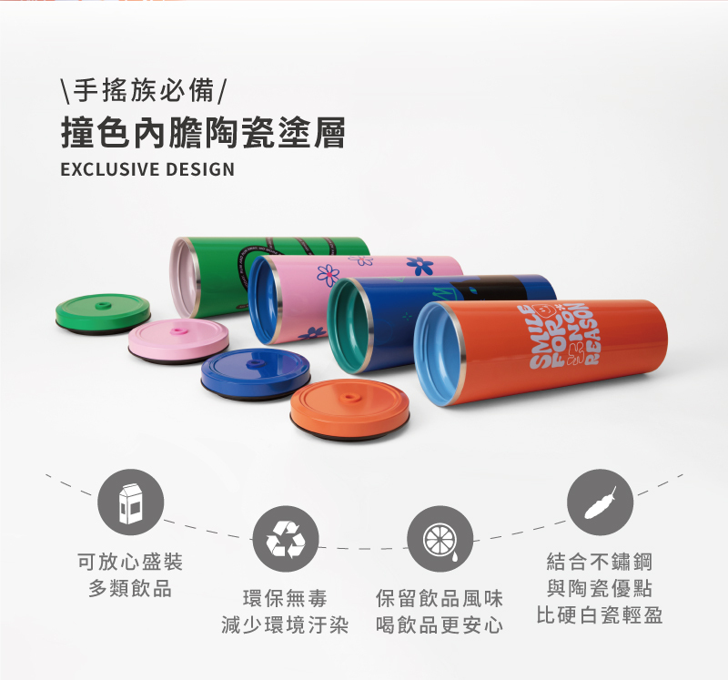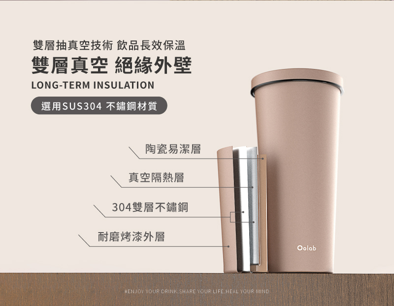• 杯身:SUS 304不鏽鋼內膽+陶瓷塗層加工