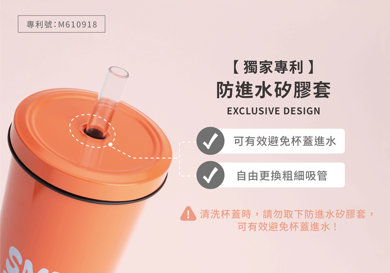 • 杯蓋:外蓋SUS不繡鋼 / 內蓋-PP聚丙烯