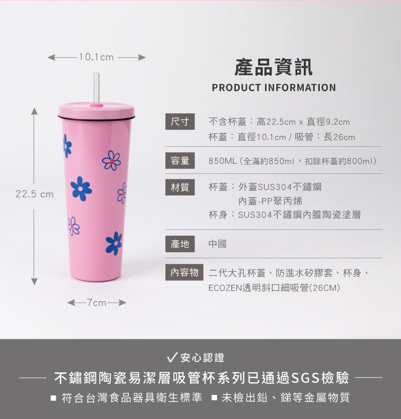 【尺寸】(含杯蓋)直徑10.1cm ± 0.1cm x 高度20.4cm ± 0.1cm