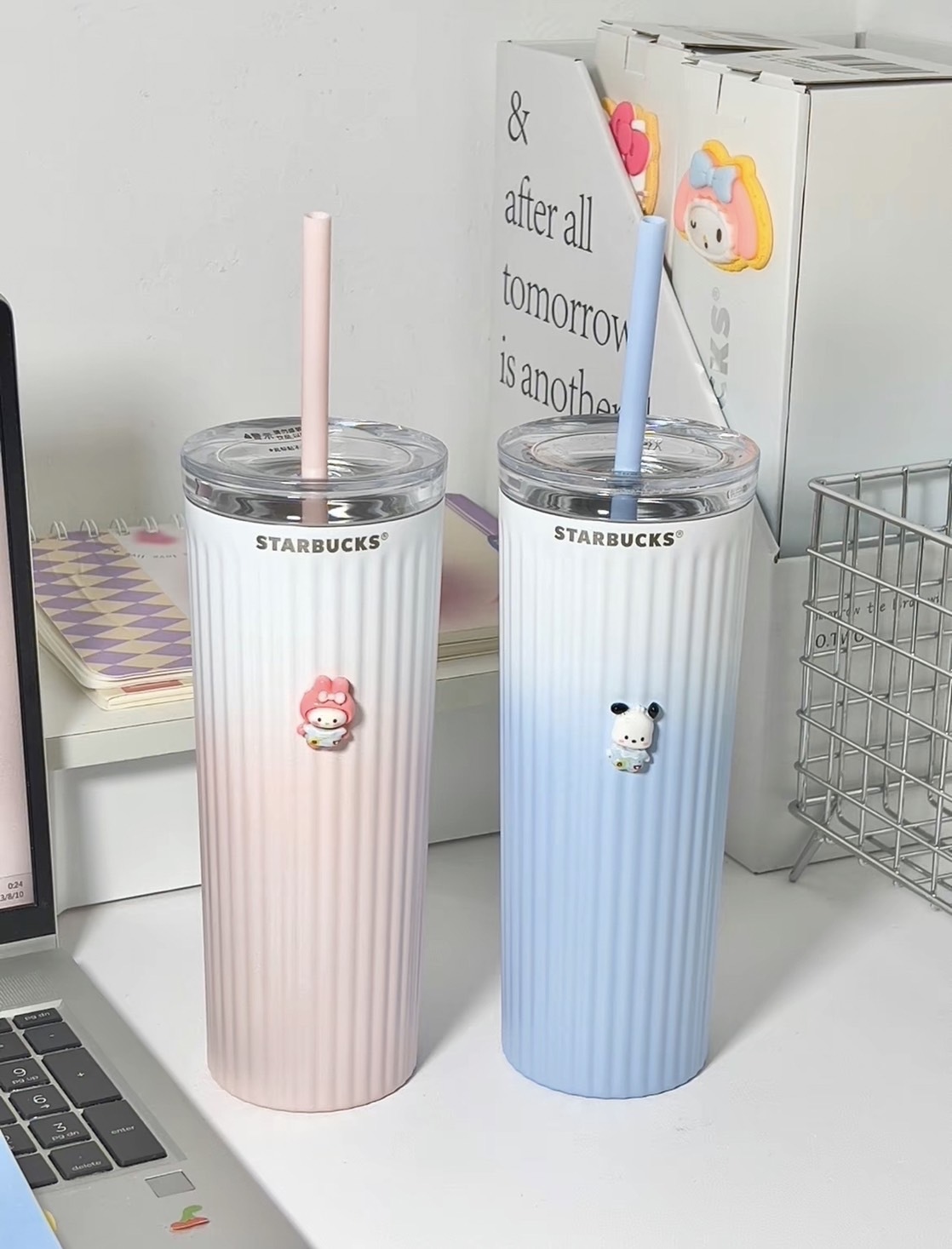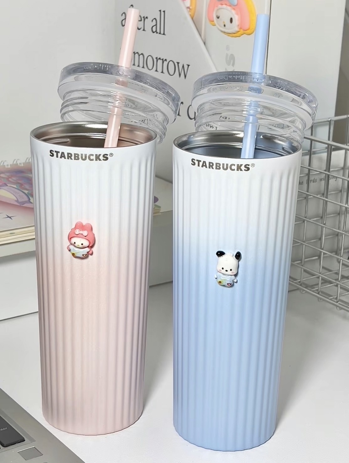 一個透明的吸管杯 另一個是包溫 掀蓋杯蓋